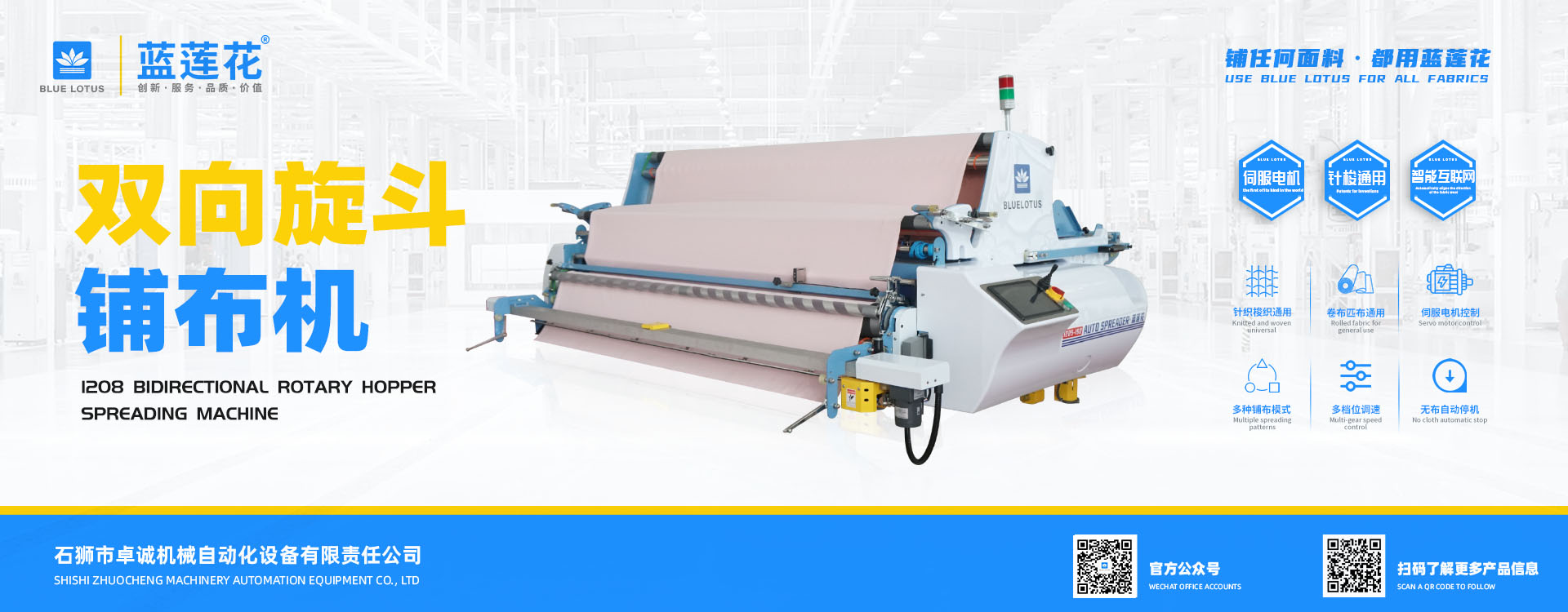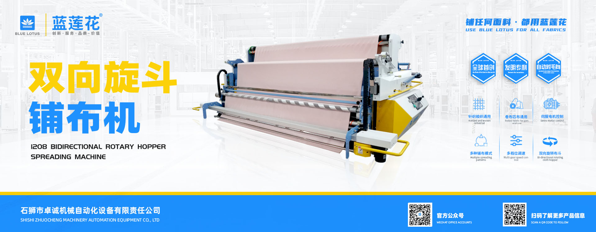 我司結合市場自主研發的藍蓮花品牌拉布機擁有多項自主專利技術,機器以小巧多功能易操作低維護為特點,為業界提供性價比機型; 藍蓮花品牌拉布機以實用質優為特點自投產以來便在國內贏得市場廣泛認可。
